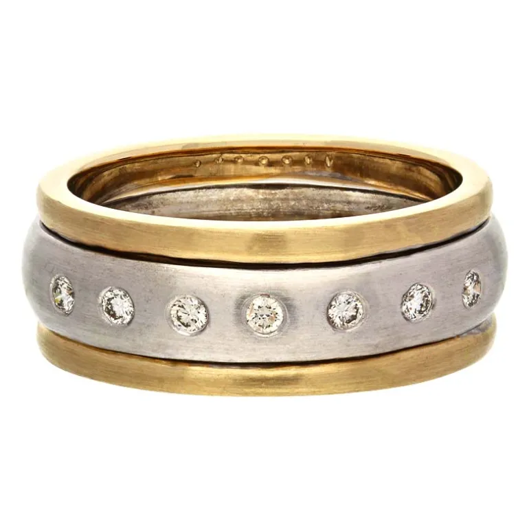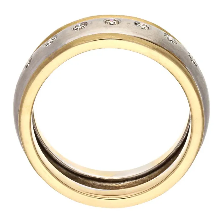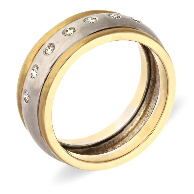 Geschmackvoller Damenring aus 585er Gelb- und Weißgold mit funkelnden Brillanten.